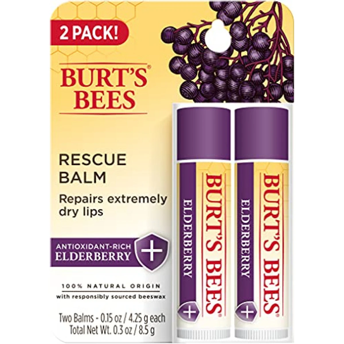 Burt’s Bees Elderberry Rescue Balm instantly relieves dryness, and its rich berry flavor will revive the senses with every swipe. Made with antioxidant-rich elderberry, this intensely moisturizing lip balm instantly soothes while providing a protective moisture barrier to help promote healing of extremely dry lips. Burts Bees lip balm provides long lasting moisture when used every 4 hours, relieving dryness. All of the ingredients in this lip moisturizer are 100% natural origin and responsibly sourced beeswax and jojoba oil. Especially helpful in winter months or in cold climates, this Rescue Balm provides relief when you need it most. Keep a tube in your purse, desk, car or take with you on the go. This natural lip balm is formulated without parabens, phthalates, petrolatum or SLS. Choose from 5 soothing varieties: Unscented, Cooling Eucalyptus, Honey, Lemon and Elderberry. Plus, 50% of the packaging is made from a combination of recycled and plant-based plastic.