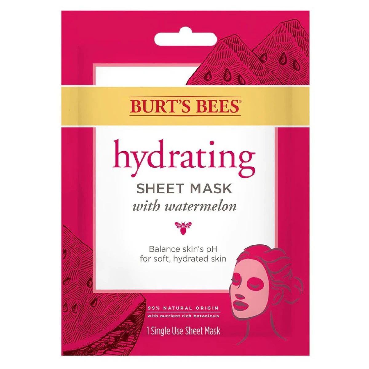 - NATURAL INGREDIENTS: Burt’s Bees hydrating sheet mask is formulated with watermelon extract as it moisturizes and refreshes skin with the natural power nutrient-rich botanicals.